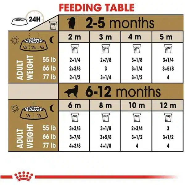 برای بهرهبرداری کامل از فواید غذای سگ گلدن رتریور پاپی رویال کنین، مقدار مصرف این غذا باید بر اساس وزن و سن توله سگ تنظیم شود. این غذا باید بهطور منظم در وعدههای غذایی تولهها داده شود تا رشد و سلامت آنها بهدرستی پیش رود.