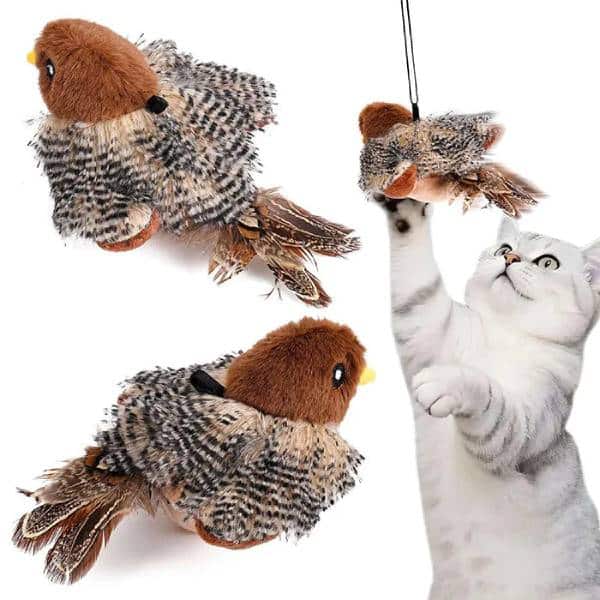 این پرندهی بالدار موزیکال یک اسباببازی هیجانانگیز برای سرگرمی و تحرک بیشتر گربههاست. طراحی آن با بالهای متحرک و پخش صدا، حس شکار طبیعی را برای گربه شبیهسازی میکند و باعث میشود گربه ساعتها سرگرم بماند. این وسیله هم بهصورت آویزان با کش قابل استفاده است و هم دارای بند دستی برای بازی مستقیم با صاحب گربه.